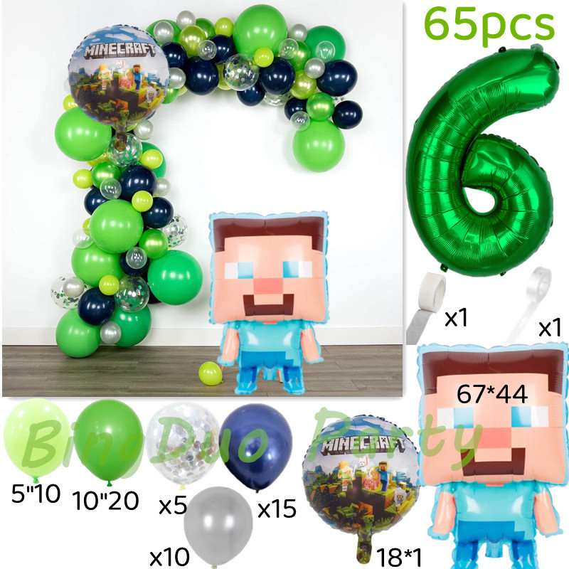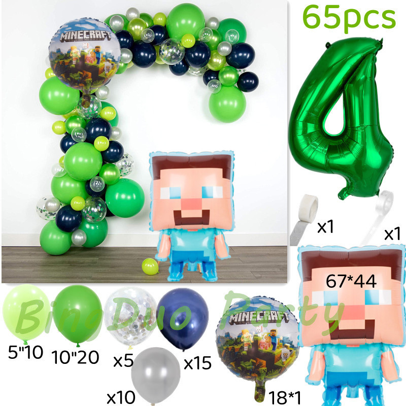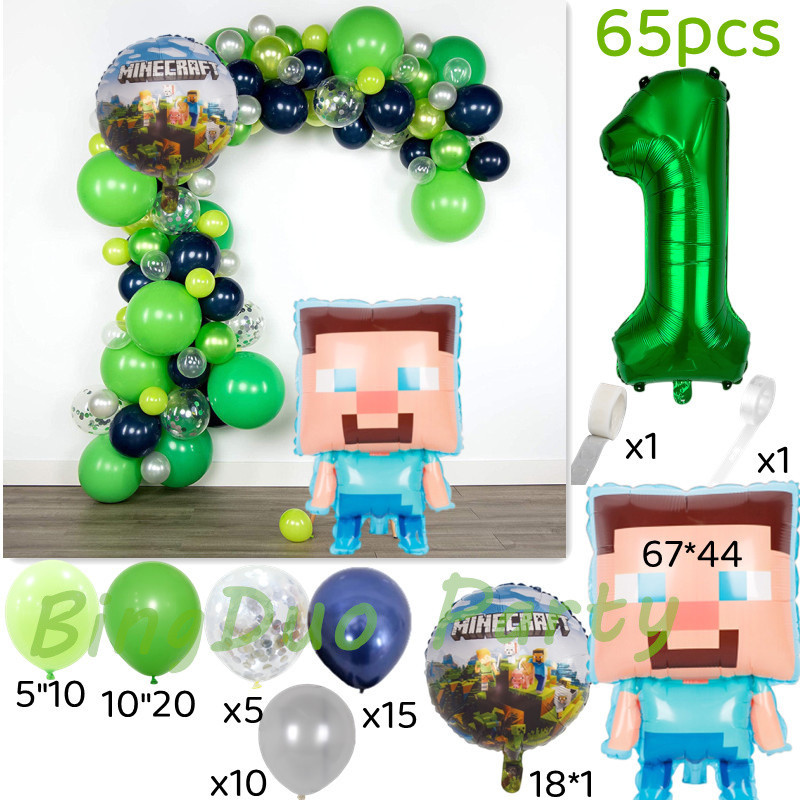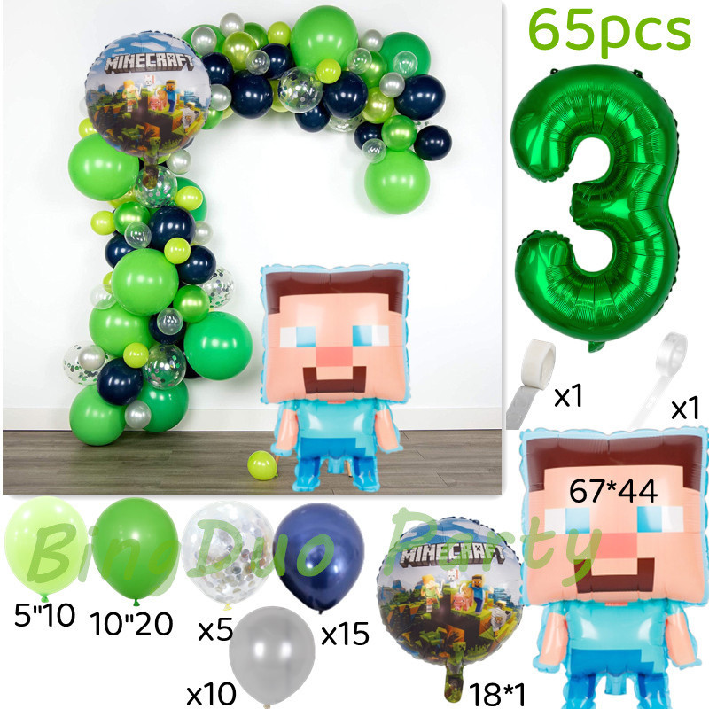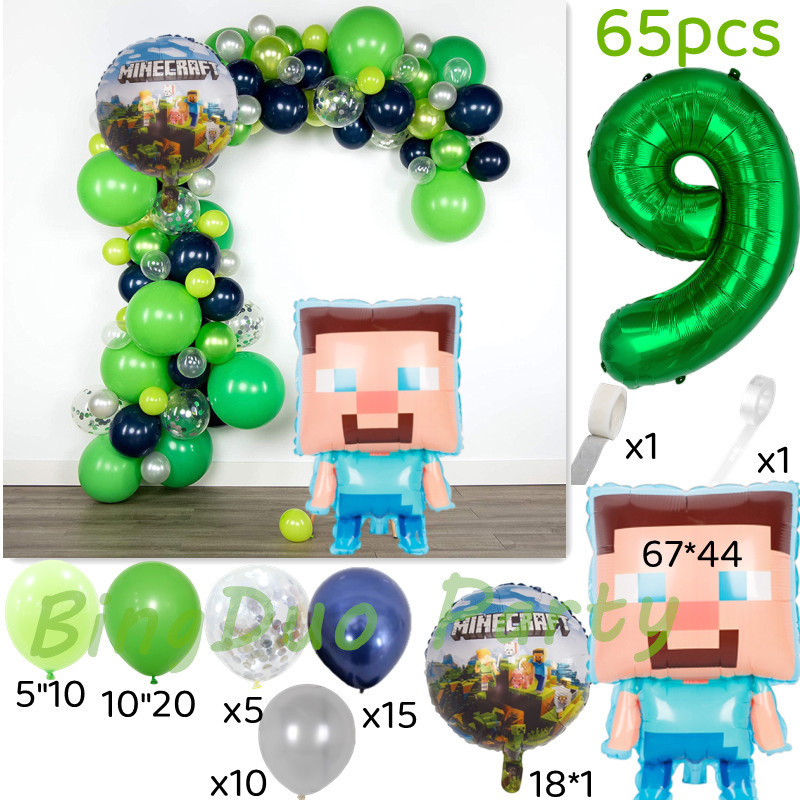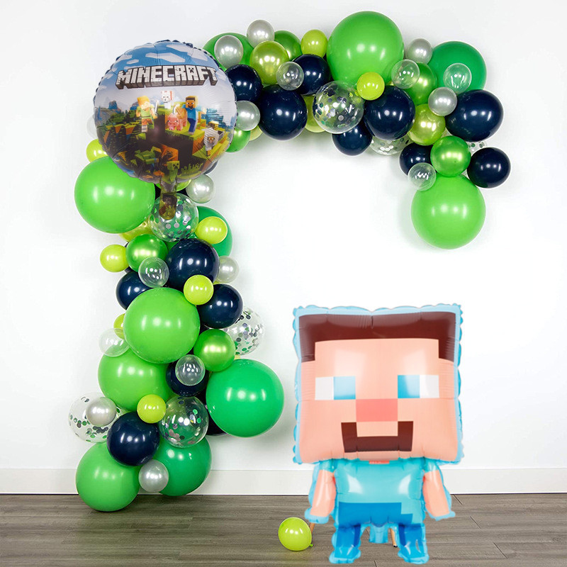 Minecraft Theme 1-9 Year Old Balloons Set 32inch Green Number Steven Foil Balloon 18inch Roundball Birthday Party Supplies