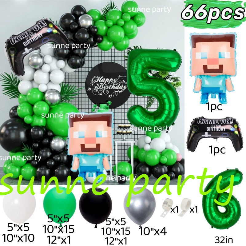 Minecraft Theme Balloon Garland 32inch Green Number Balloon 0-9th Kids Gaming Handle Birthday Party Decor Baby Shower