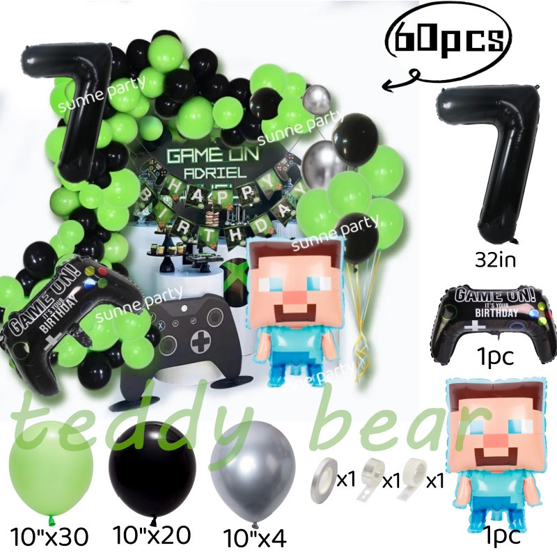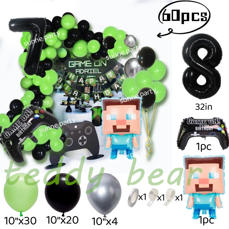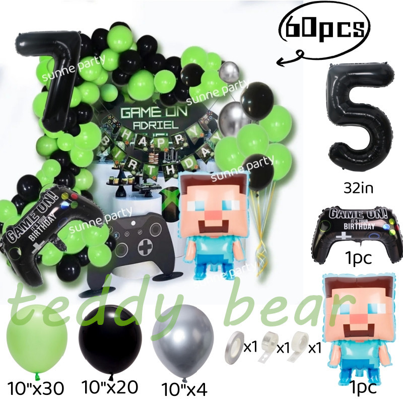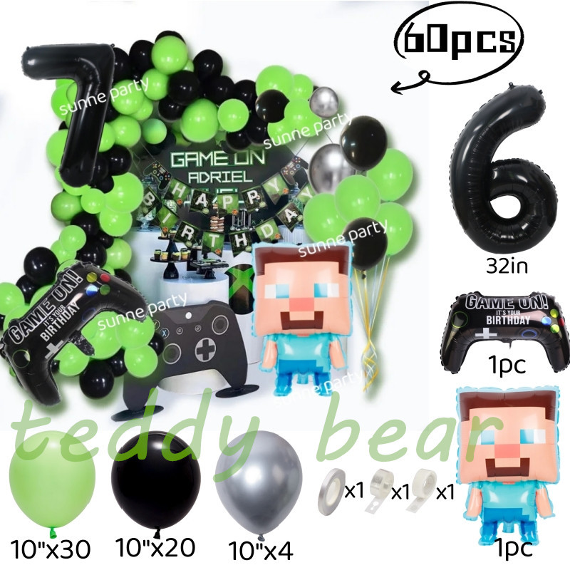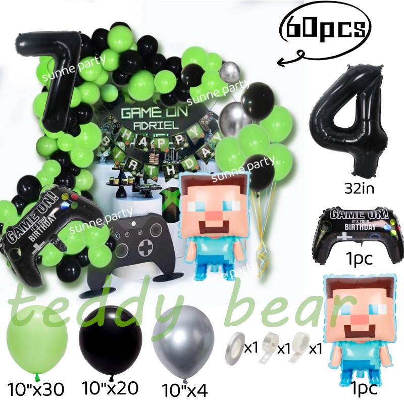 Minecraft Theme Balloon Garland Arch Kit 32inch Black Number Balloon Game Controller Steven Foil Balloon Chain Birthday