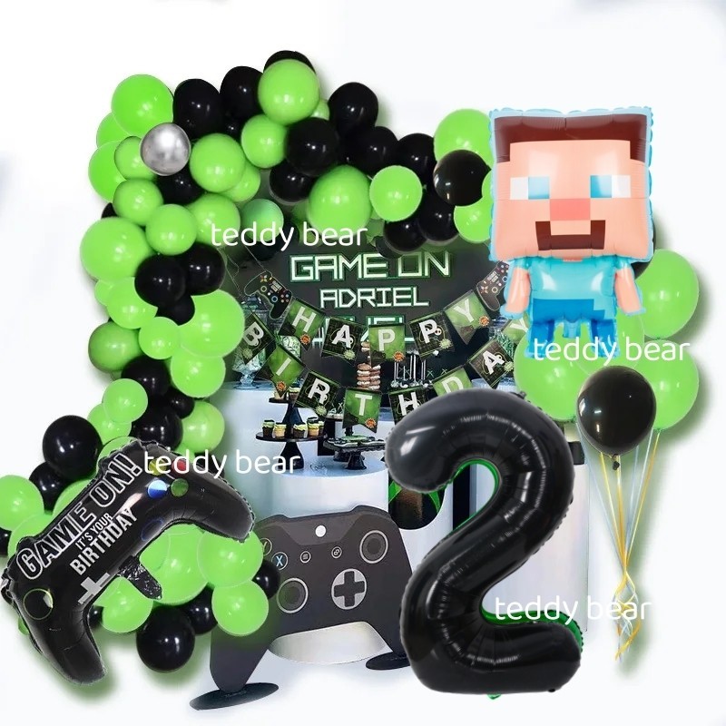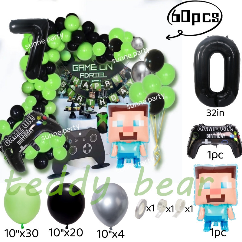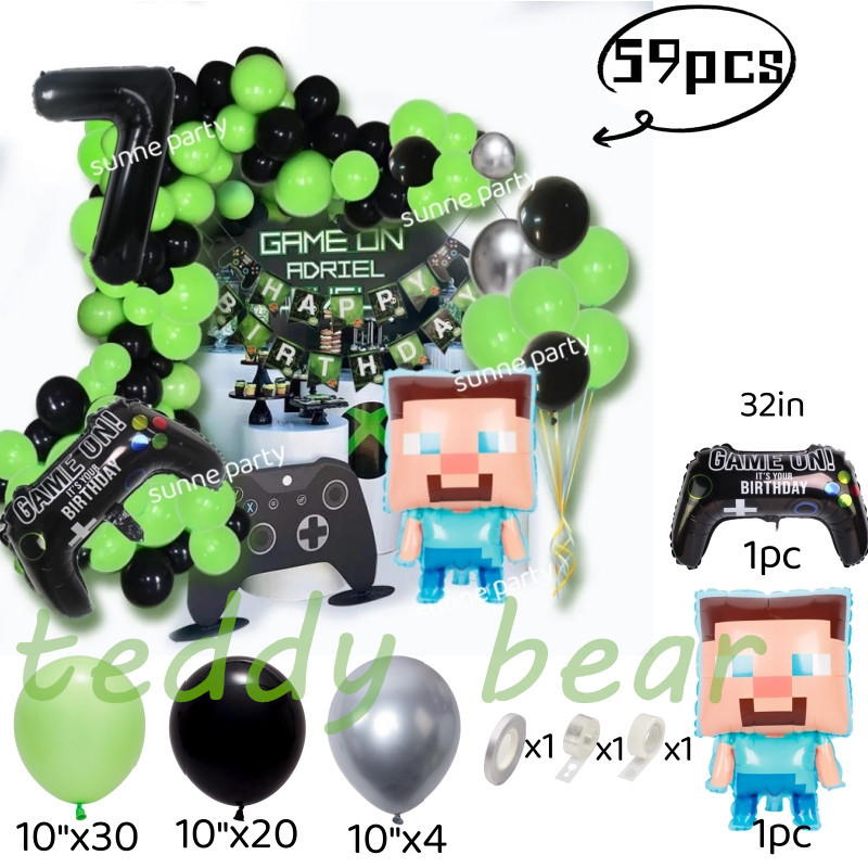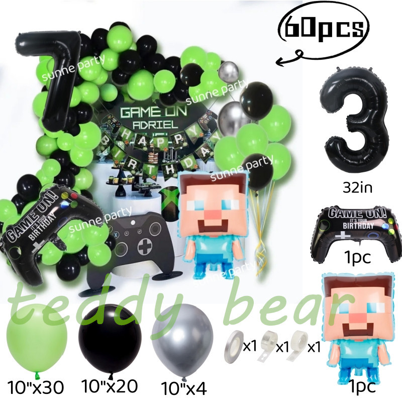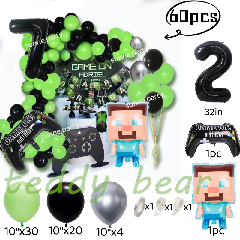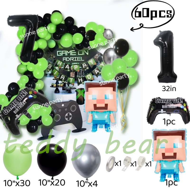 Minecraft Theme Balloon Garland Arch Kit 32inch Black Number Balloon Game Controller Steven Foil Balloon Chain Birthday