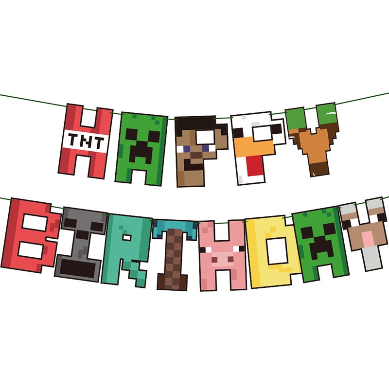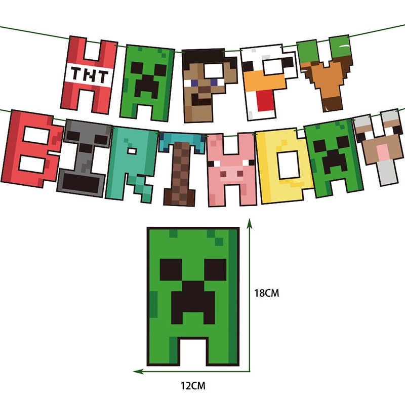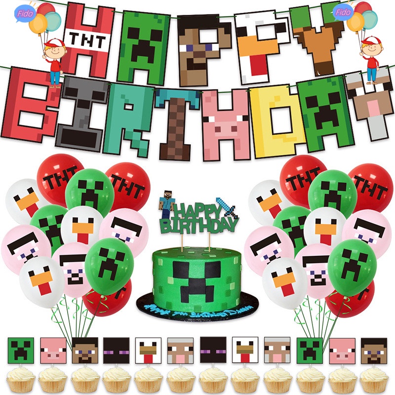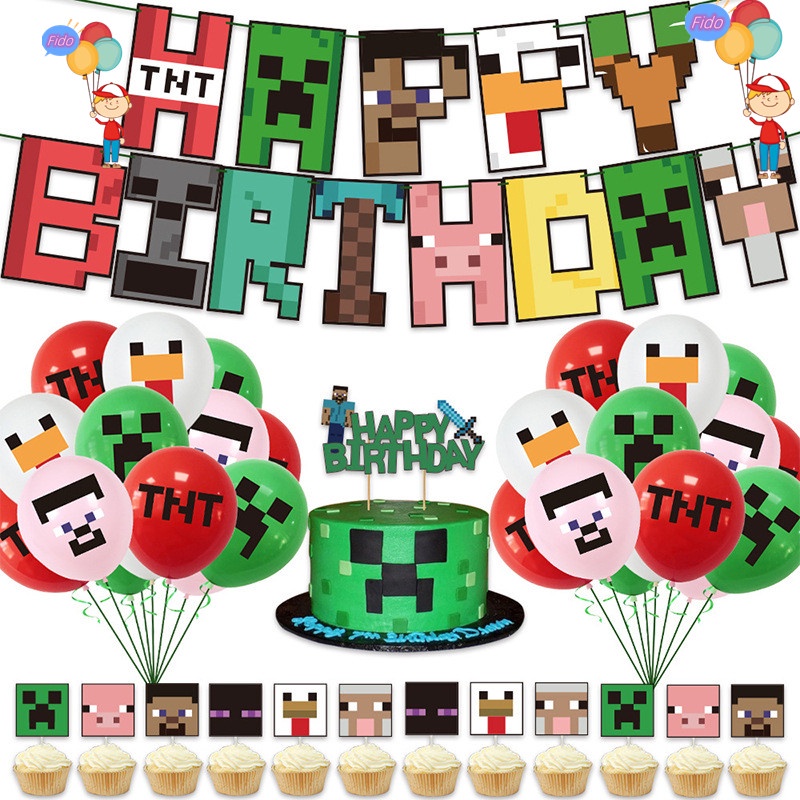 Minecraft Theme Party Set Pixel Wars Birthday Banner Cake Topper Party Background Decoration Birthday Party Need