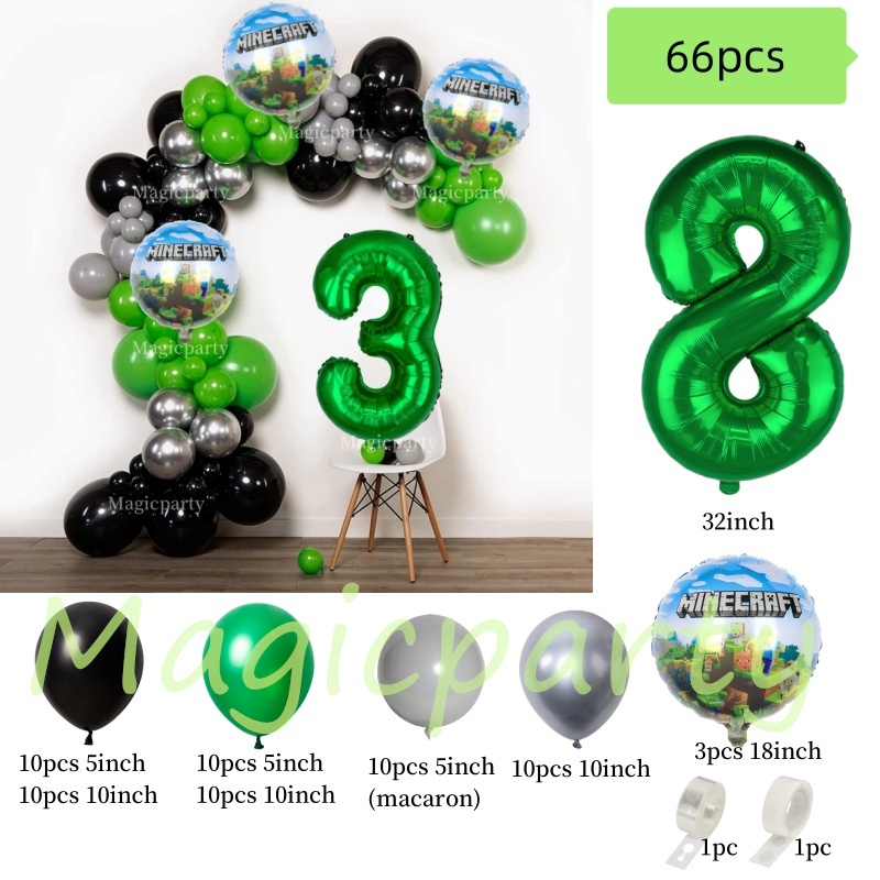 Minecraft Themed Balloons 18inch Roundball 32inch 1-9th Foil Balloons Birthday Decoration Set Boys Birthday Party Needs