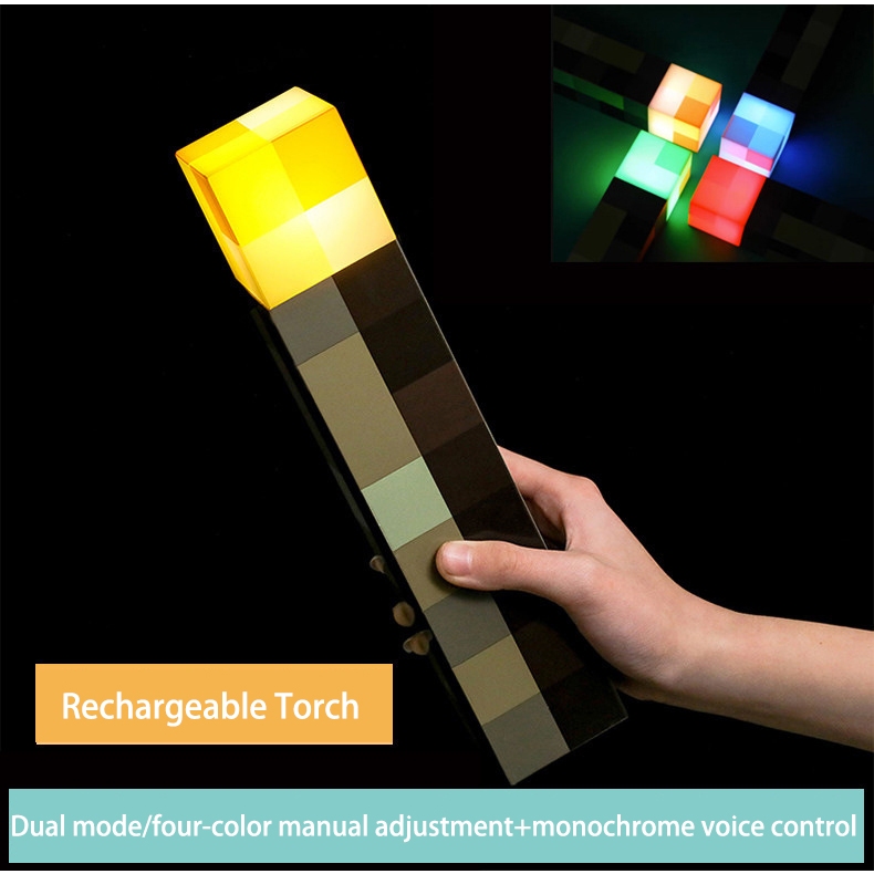 Minecraft Torch Light with Sounds Voice Control, Potion Bottle Creeper Minecraft Lamp Night Light for Kids Gaming Room Gifts, My World Game Rechargable Table Lamp