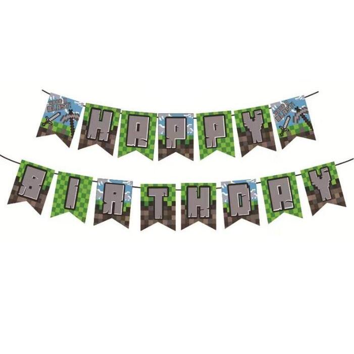 Minecraft theme Party Supplies happy birthday banner pixel theme party for kid birthday MC pixel theme party