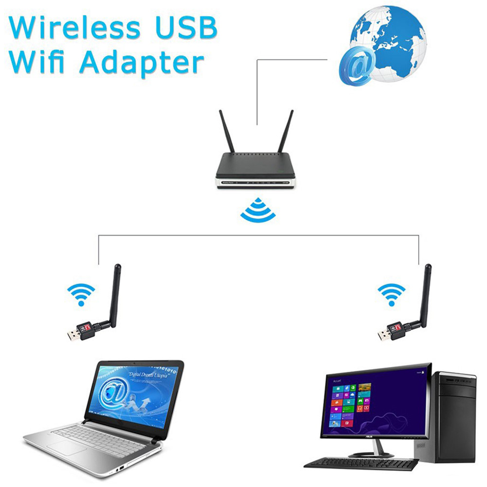 Mini 150Mbps USB WiFi Wireless Adapter PC Network LAN Dongle with Antenna