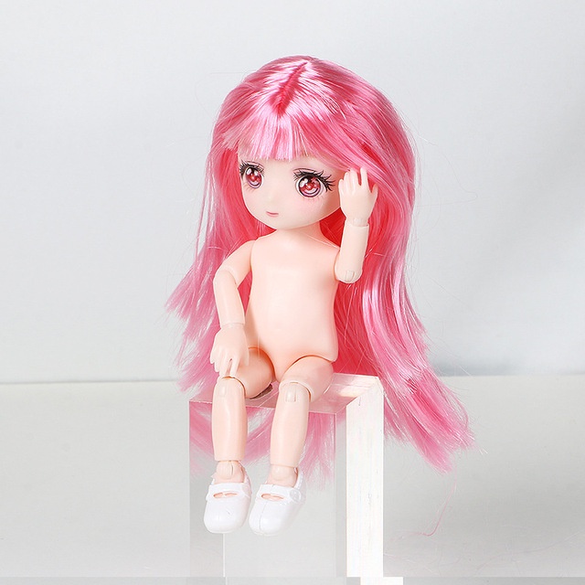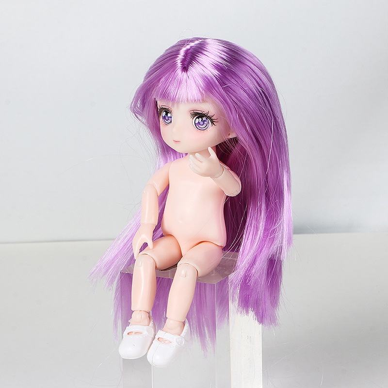 Mini 16cm Cute Anime Doll Toy Purple Eyes 1/8 Bjd Two-dimensional Comic Face Children Dress Up Toy Accessories