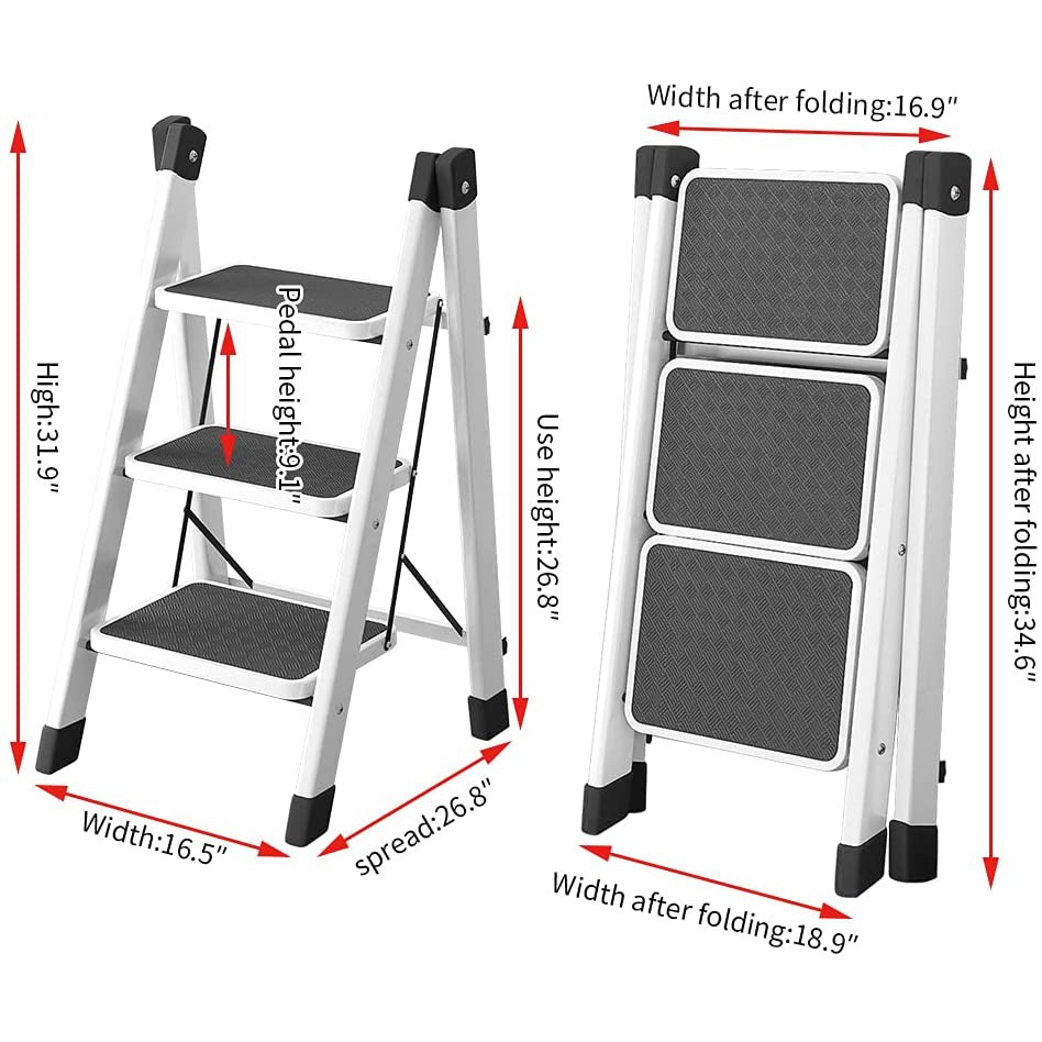 Mini 3 Step Portable Herringbone Ladder Sturdy Non-Slip Lightweight Folding Ladder for Home Kitchen