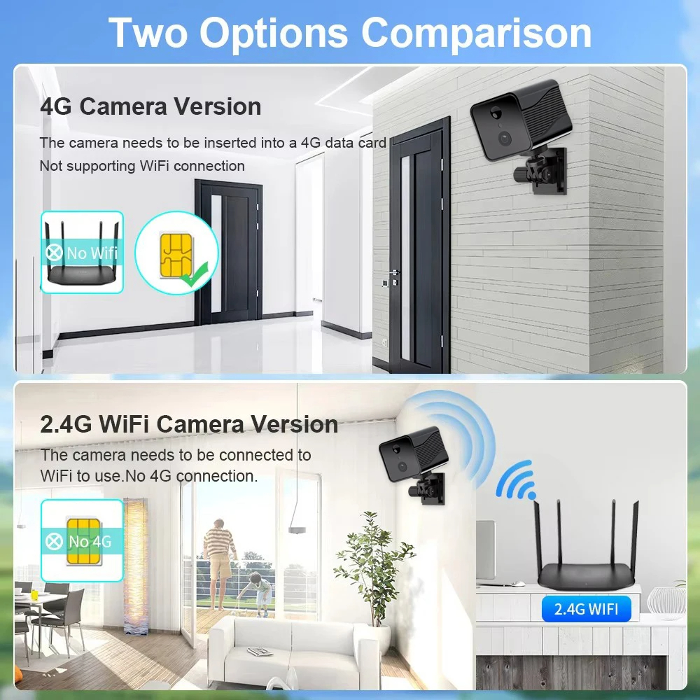 Mini 4G Security Camera SIM Card or Wifi Ultra HD Surveillance Camera 3000 mAh Battery Low Power Voice Intercom CCTV Camera