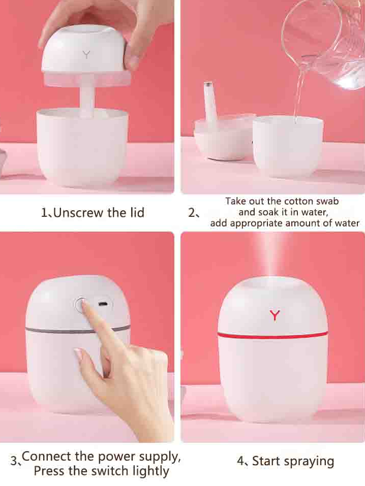 Mini Air Humidifier 3 in 1 Household Aromatherapy Atomizer 220ml with USB Color LED Rotating Light