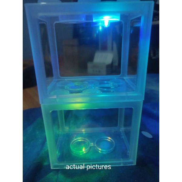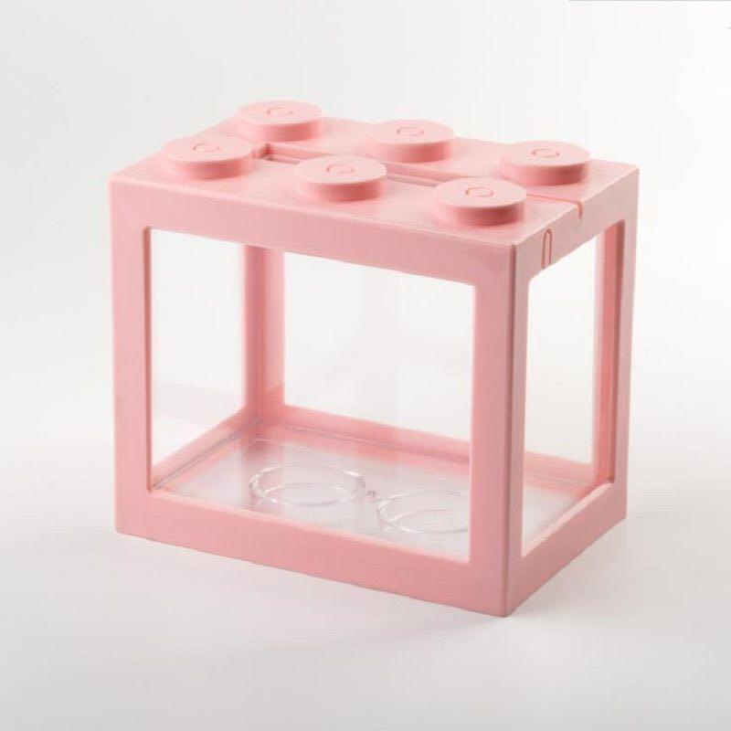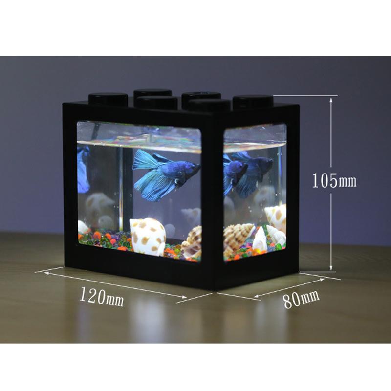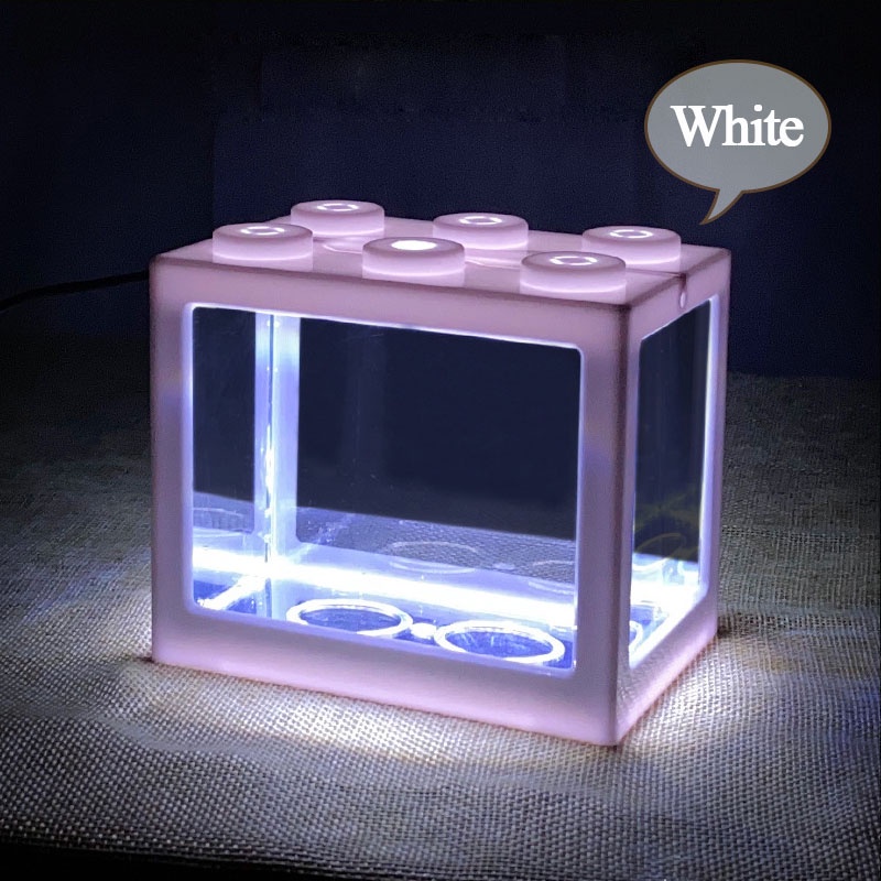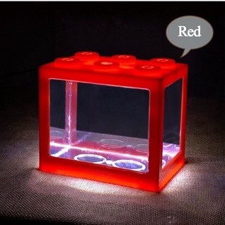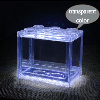 Mini Aquarium Block Tank Betta Guppy Fish Tank Building Block Reptile Enclosure with RGB Led light