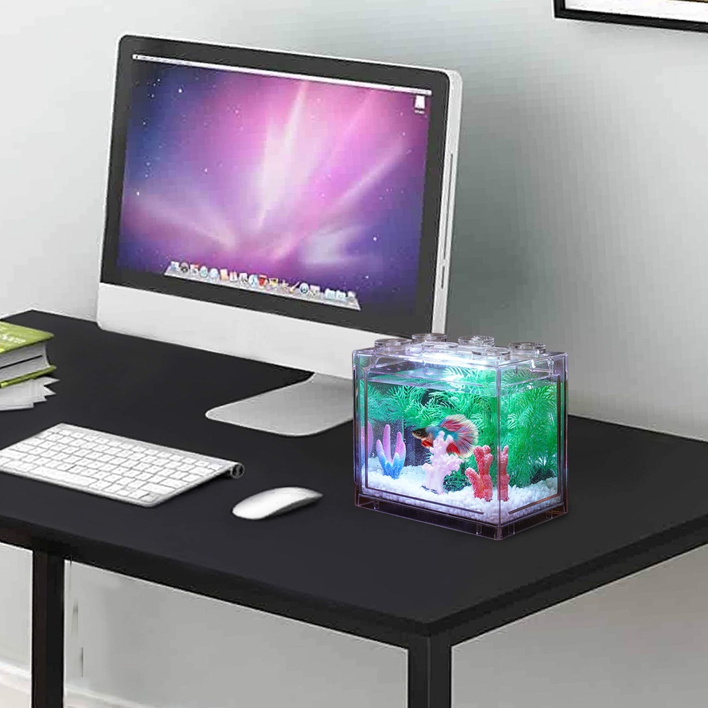 Mini Aquarium Fish Tank Block Tank Desktop Betta Guppy Building Block Fish Tank Pet Accessories