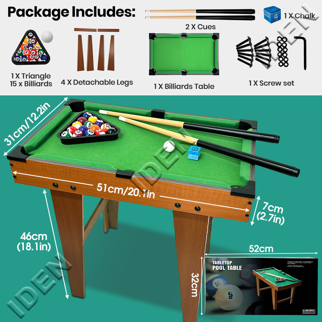 Mini Billiard Table Set For Kids Wooden Tabletop Pool table Set With Tall Feet 20x12 inches