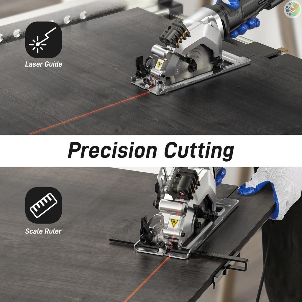Mini Circular Saw 4.8Amp 4-1/2 Inch Compact Circular Saw 3700RPM Electric Circular Saws with Laser Cutting Guide for Wood Tile and Plastic Cuts Grey US