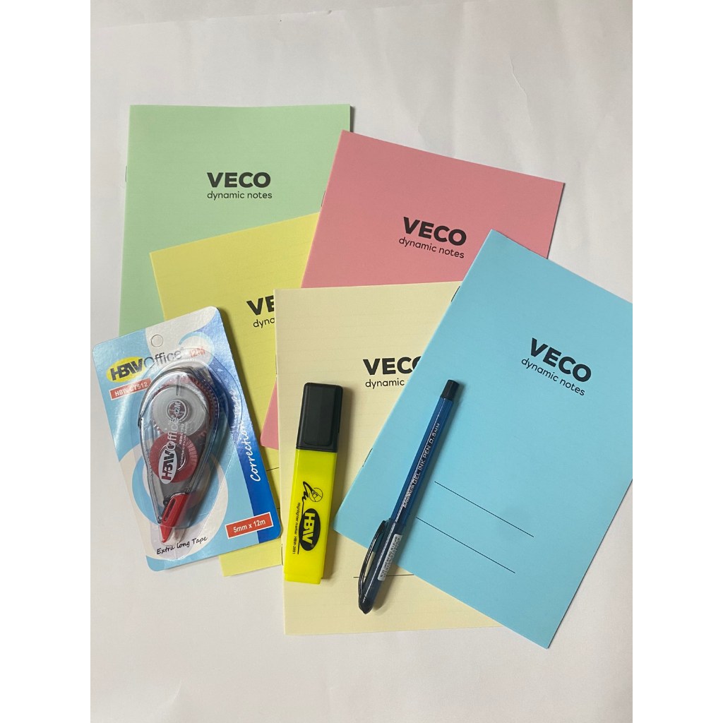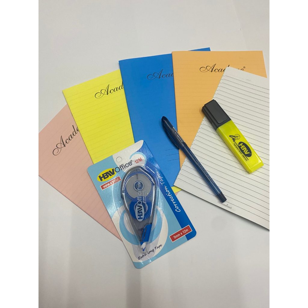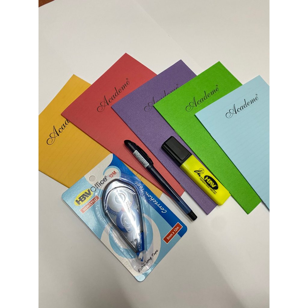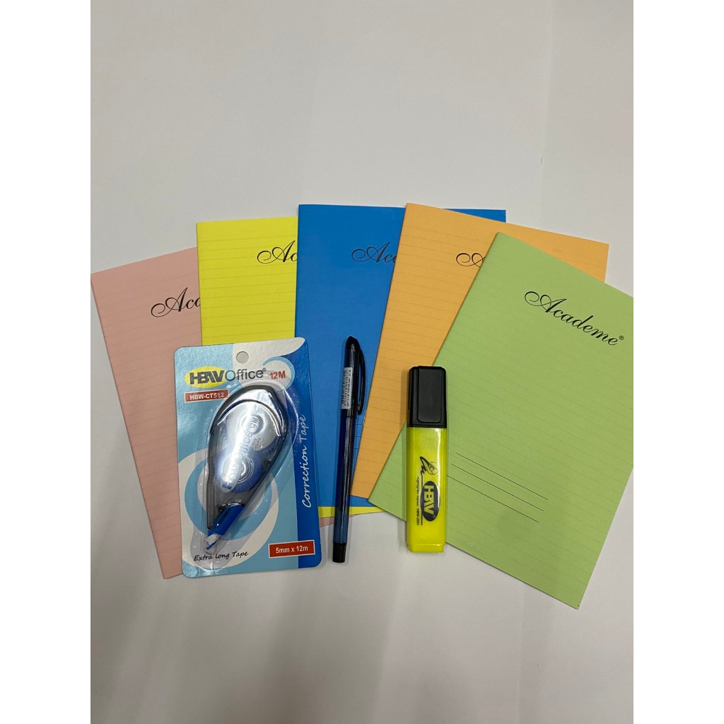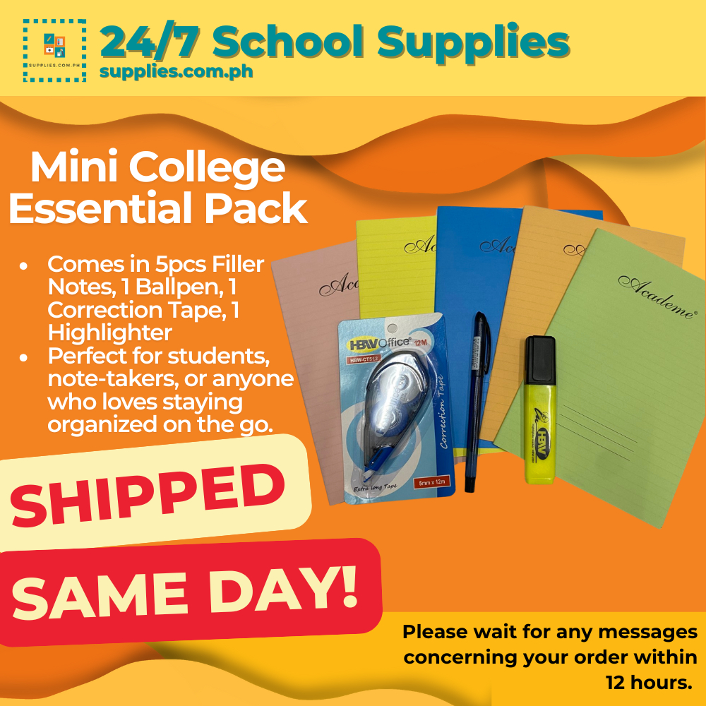 Mini College Essential Pack - 5pcs Filler Notes, 1 Ballpen, 1 Correction Tape, 1 Highlighter