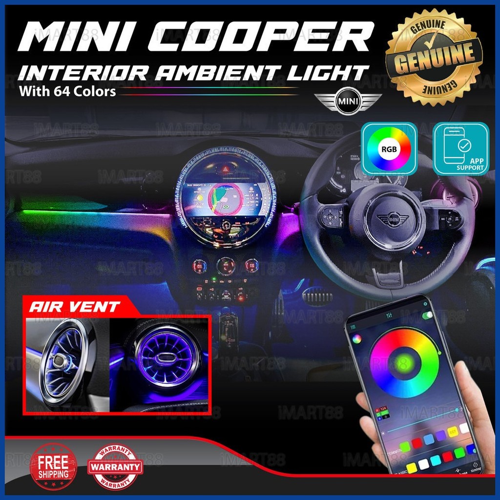 Mini Cooper Interior Ambient Light LED Lamp 64 Colors Dashboard Aircon Cover Vent Panel Body kit Li