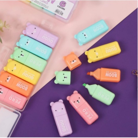 Mini Cute Bear Highlighter Kawaii 4/5/6 Colors Drawing Painting Art Marker Pen School Sup