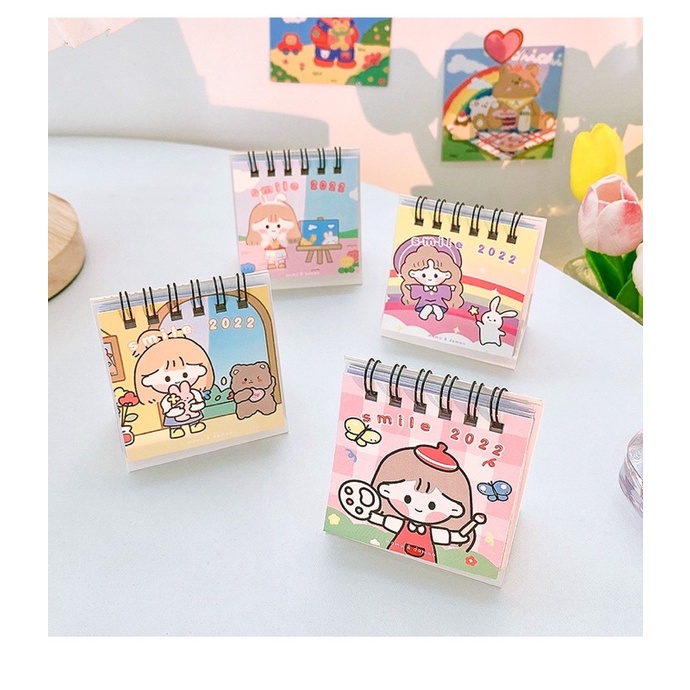 Mini Desk Calendar 2022 China Folding Sitting Display Calendar Decoration Cute Aesthetic Study Desk Calendar