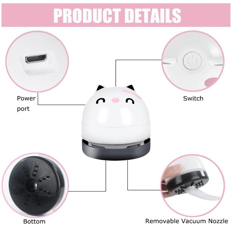 Mini Desktop Vacuum Cleaner, Portable USB Vacuum Cleaner for Desk Mini Cute Cartoon Desktop Vacuum for Cleaning Eraser Crumbs, Dust, Crumbs, Piano, Hairs, Computer, Keyboard