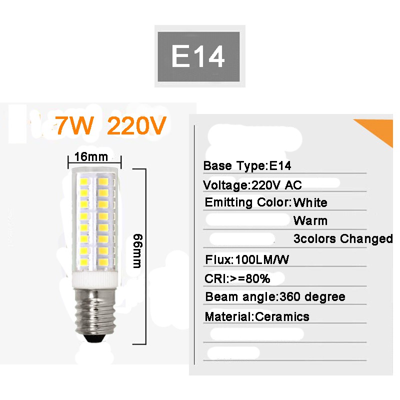 Mini E14 LED 5W 7W Lamp Light AC 220V Corn Bulb Chandelier for Decoration Kitchen Ventilator Refrigerator