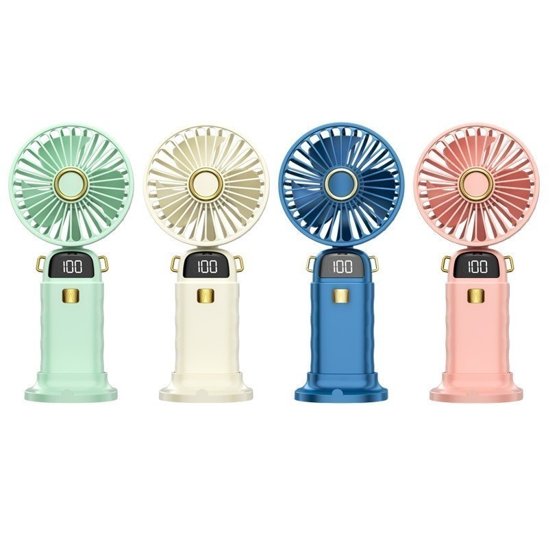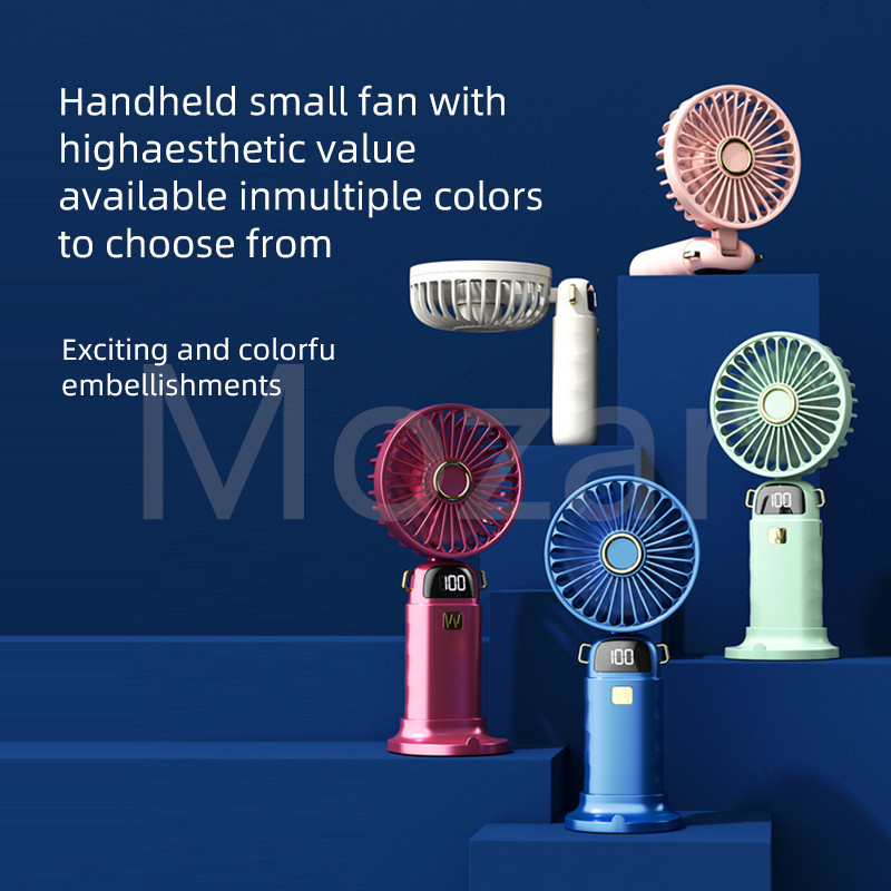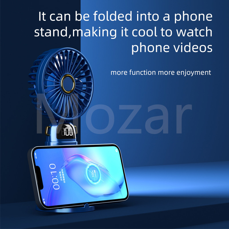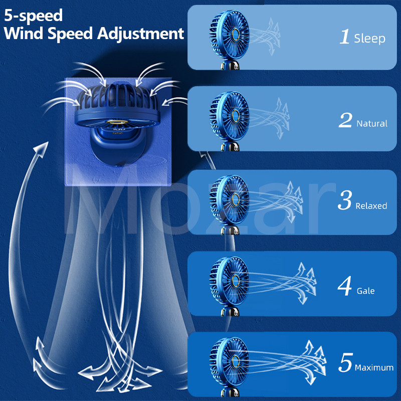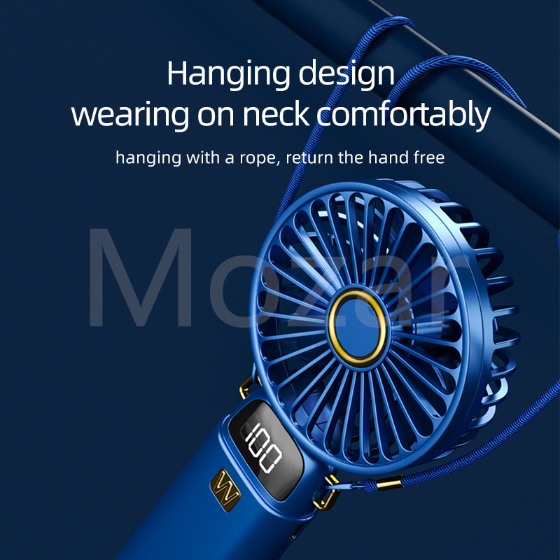 Mini Fan Portable 5-speed Neck-Hanging Handheld and Desktop LED Digital Display Folding Electric Fan