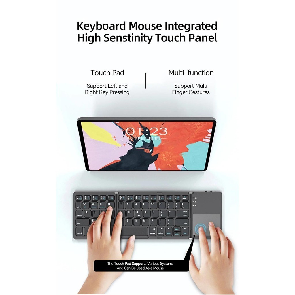 Mini Folding Keyboard Bluetooth Wireless Portable Universal Foldable Keyboard with Touchpad for Windows Android IOS Tablet iPad
