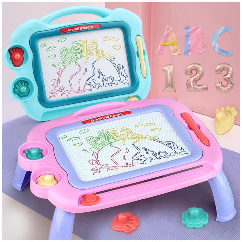 Mini Kids Children Drawing Board Magnetic Magic Slate Toddlers Sketchpad Table with Legs for Bed