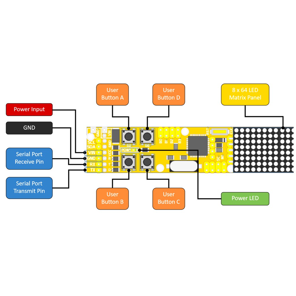 Mini LED Matrix Module for Arduino Raspberry Pi Serial UART interface 64x8 LEDs