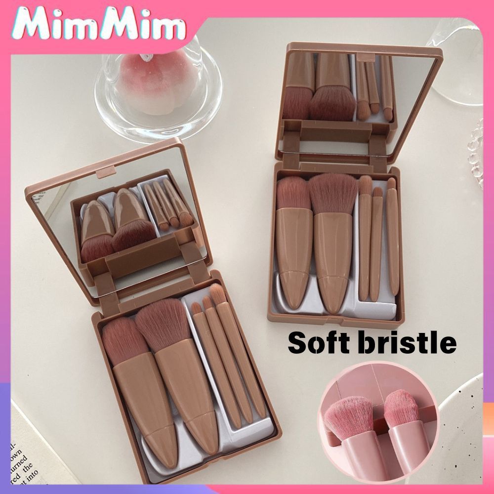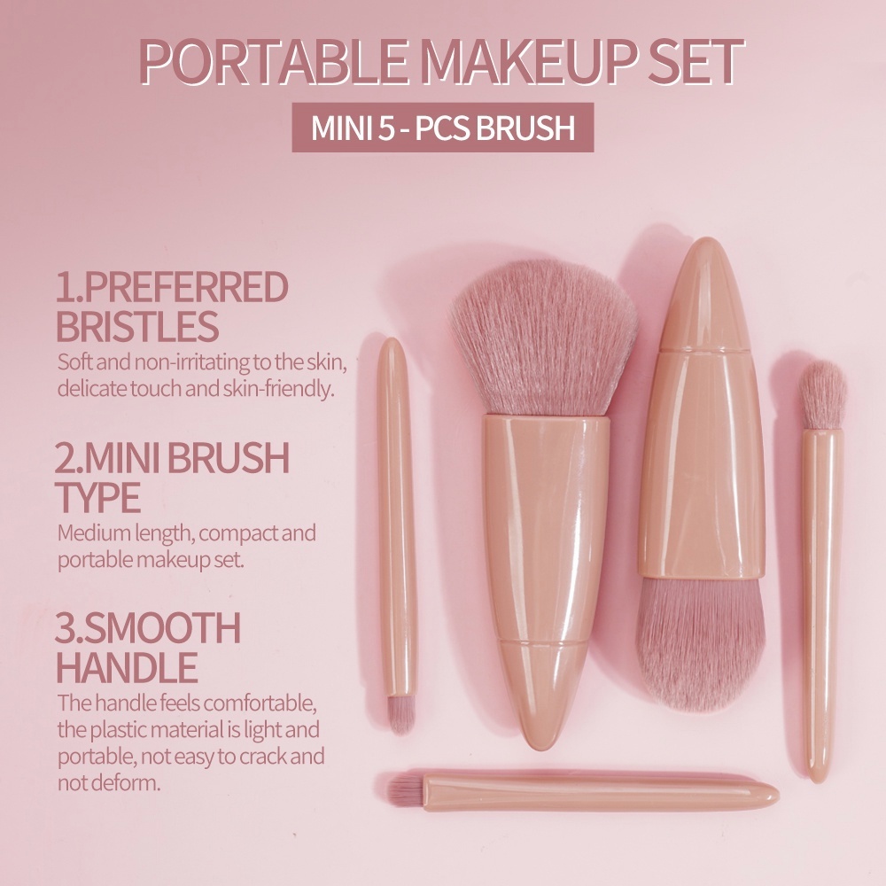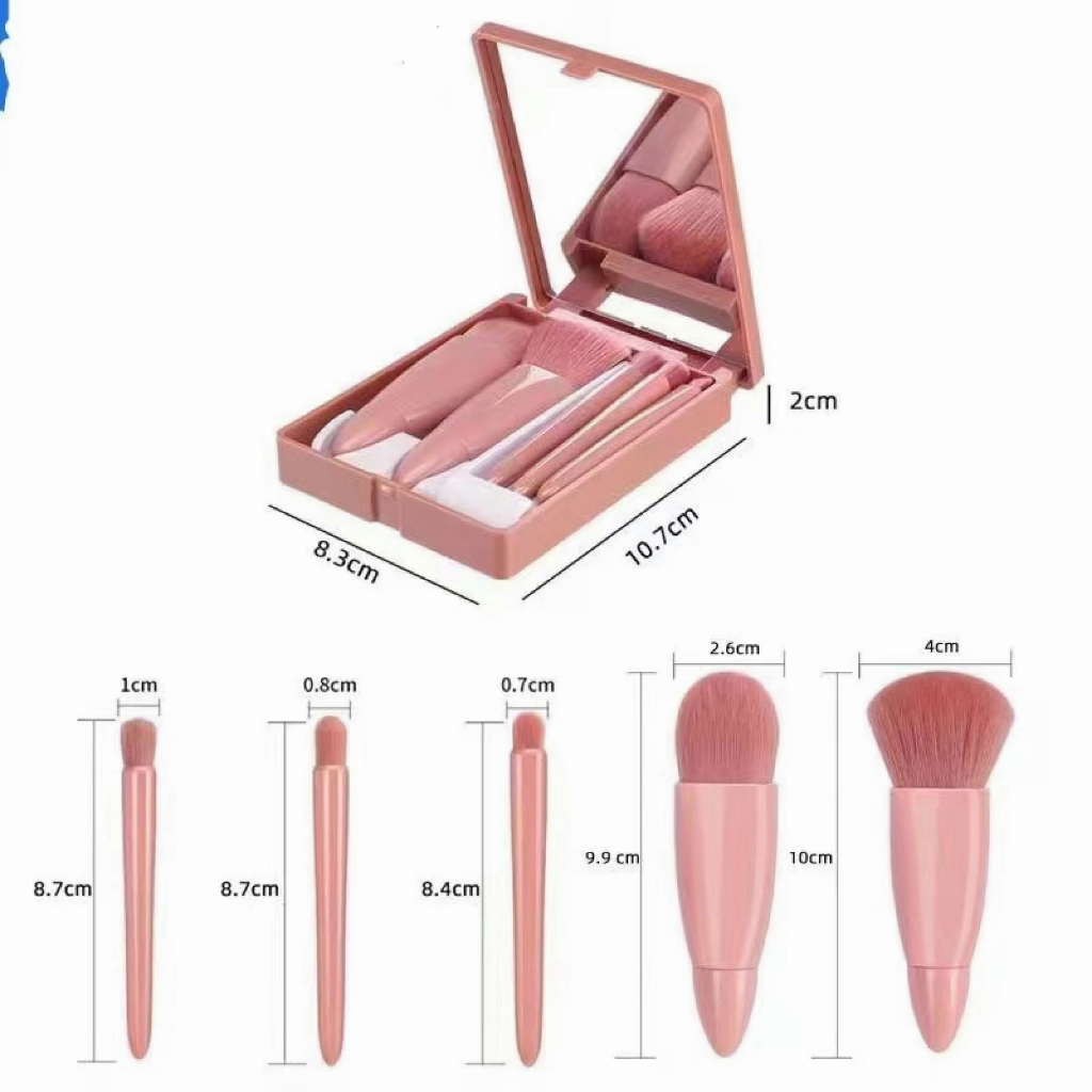 Mini Make up Brush Set Kit 5 In 1 with Case Multi-functional Small Beauty Tools Portable Eyeshadow