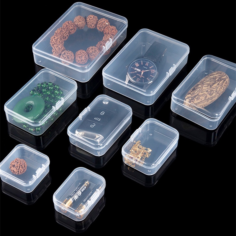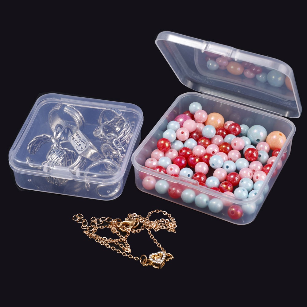 Mini Plastic Jewelry Box Translucent Square Rectangular Dustproof Jewelry Storage Case Container Desktop Jewelry, Office Stationery Assortment organizer Container