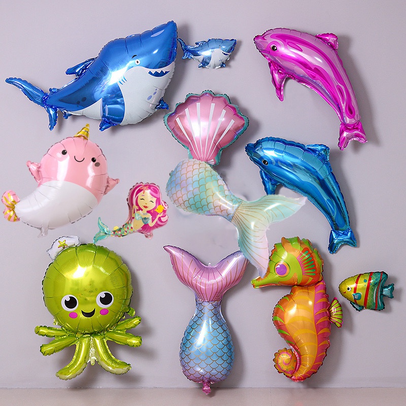 Mini Q Version Marine Animal Ocean Theme Foil Balloons Bithday Party Decoration Foil Balloon Baby Shower Kids Toys Party Need
