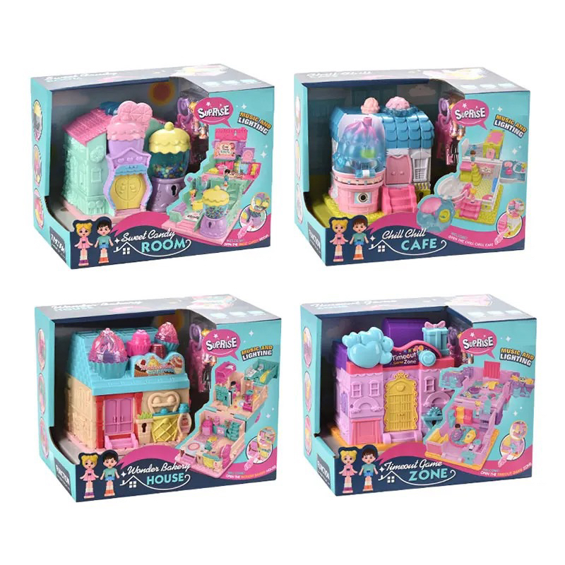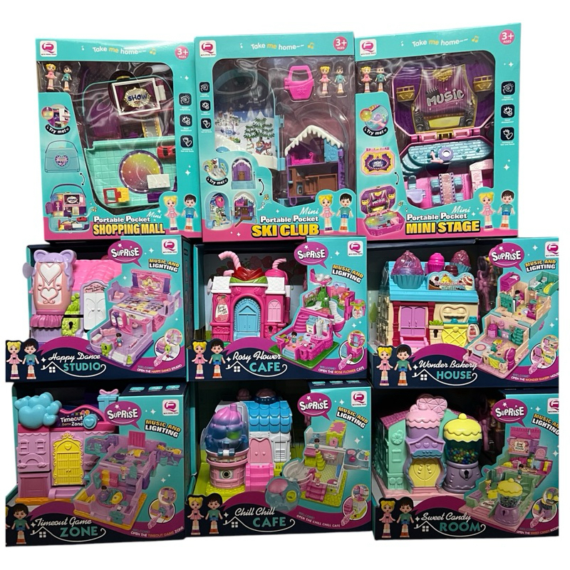 Mini Surprise Dollhouse Toys for Girls Pretend Play Polly Doll house Gift set Pocket Play Mini House