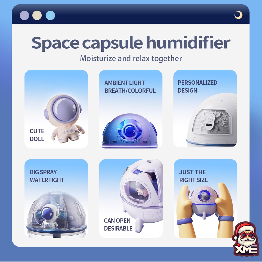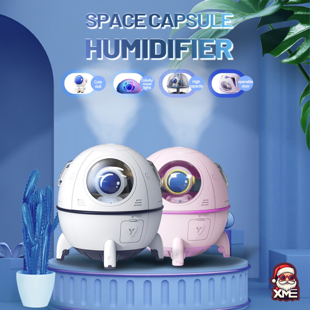 Mini Ultrasonic Humidifier Astronaut Space Capsule Atomizing 7 Colors LED Lights Flash Small Bedroom