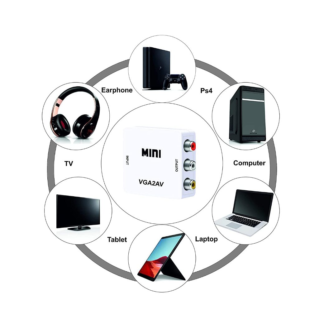 Mini Vga to Av Converter Adapter With 3.5mm Audio 1080P Hd Converter For Pc to Tv