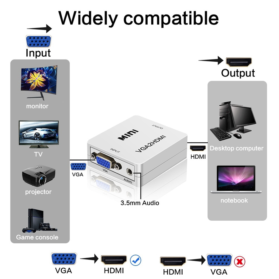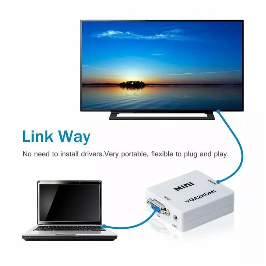 Mini Vga To Hdmi Converter 3.5mm Audio Video Adapter Full Hd 1080p Vga2Hdmi
