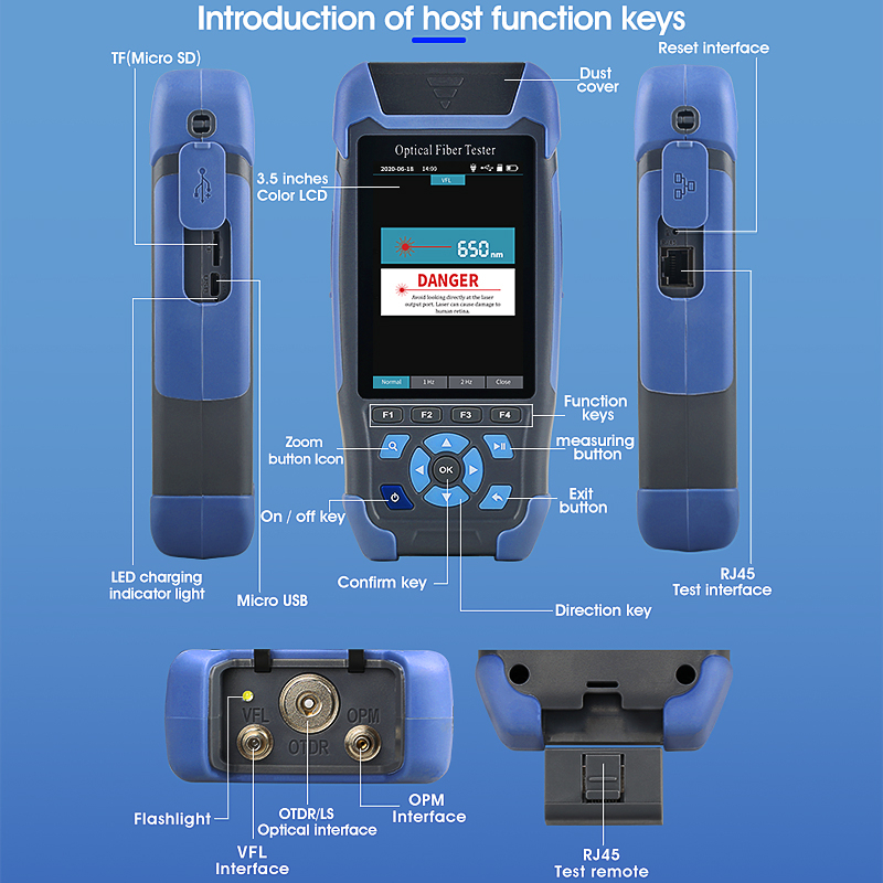 Mini pro OTDR Reflectometer 9 Functions In 1 OPM OLS VFL Device Event Map RJ45 Ethernet Cable Sequence Distance Tracker