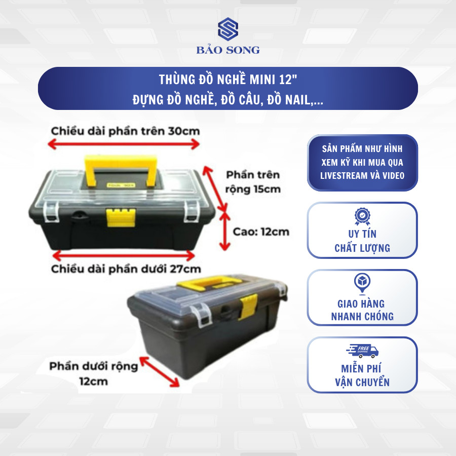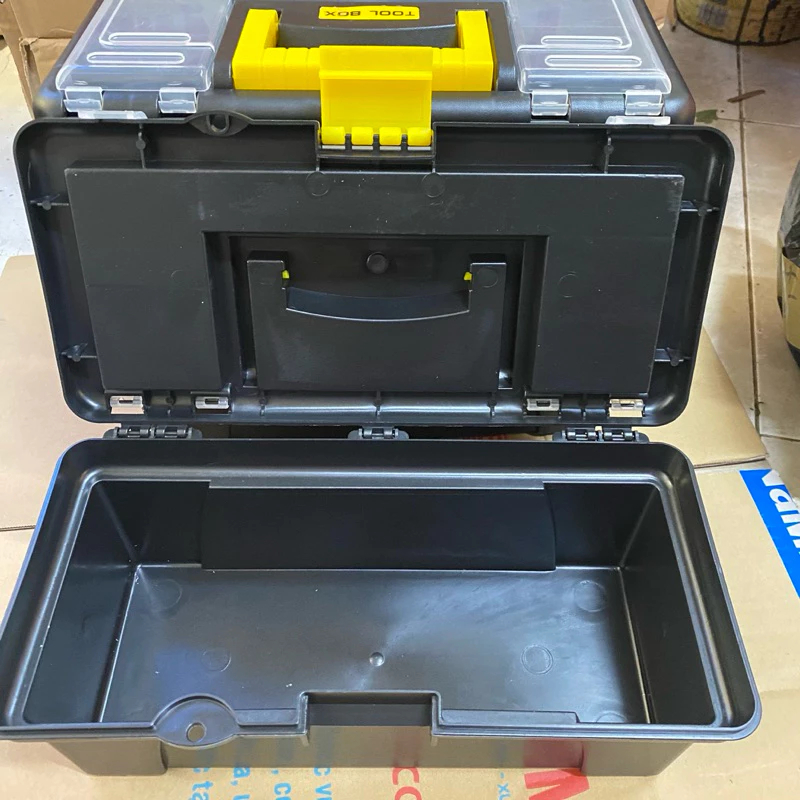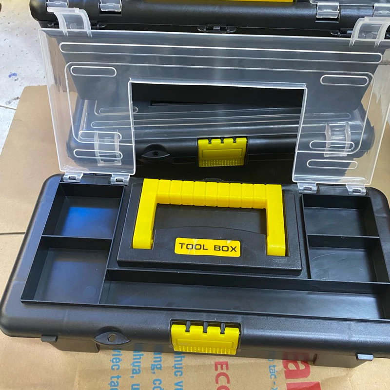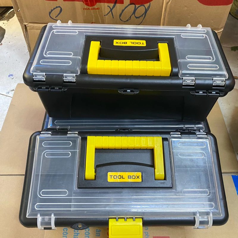 Mini tool box, clear lid plastic tool box, black plastic tool box with clear lid, nail storage box