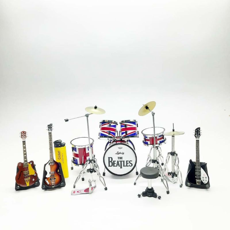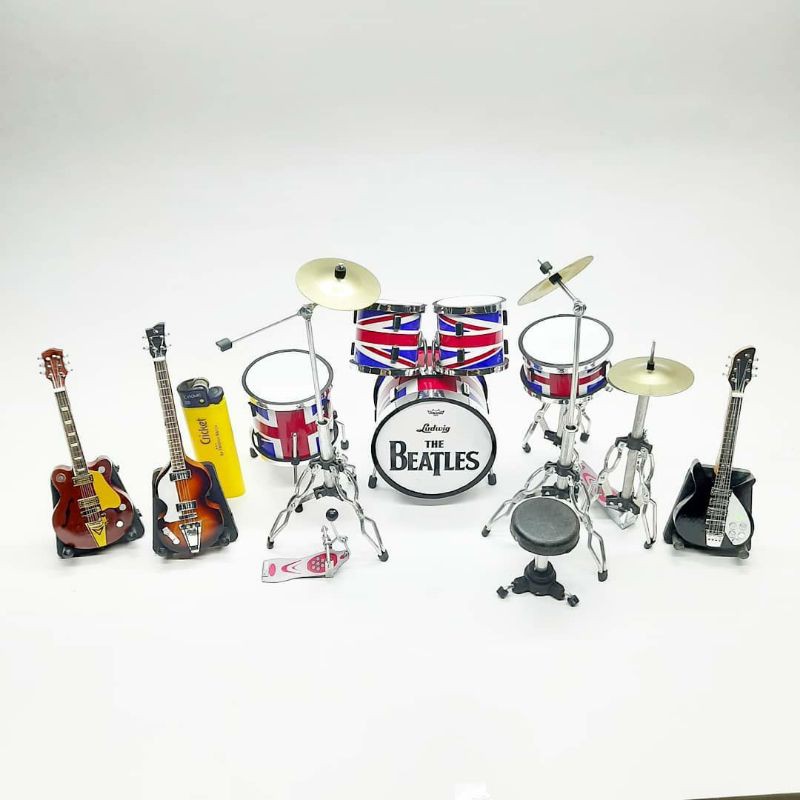 Miniature drum set the beatles UK FLAG+ Miniature Guitar Musical Instrument Wall Hanging Display Shelf 1: 12