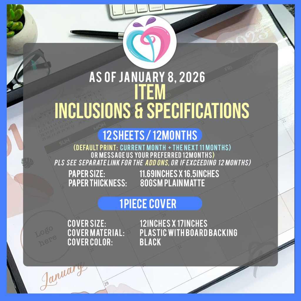 2026 Desk Calendar, Minimalist Design Big Flat Desk Calendar by PutPrints
