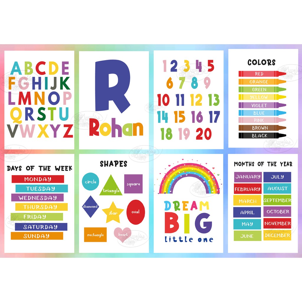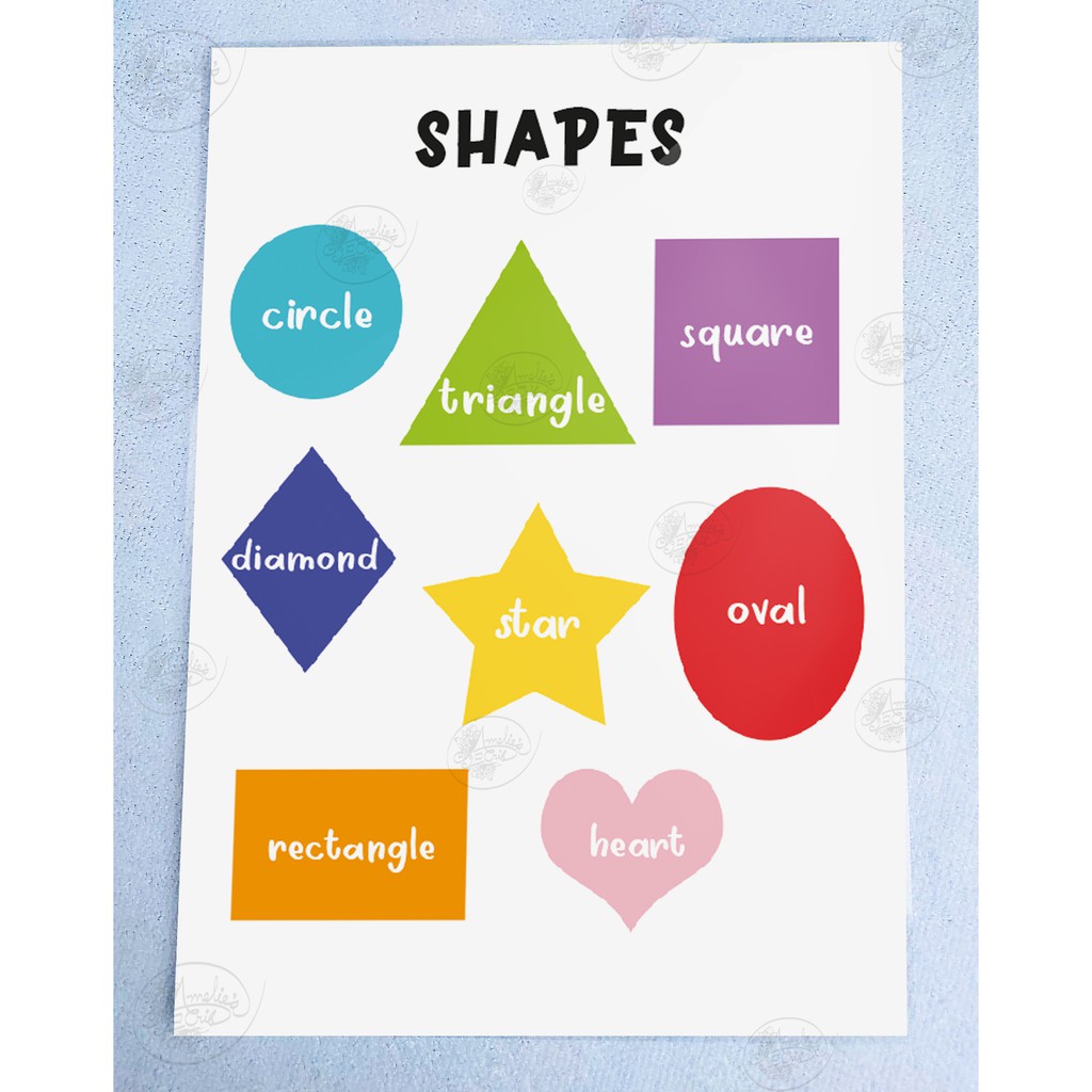 Minimalist Laminated Educational Chart for Kids, Preschool - Alphabet, Name, Shapes A4