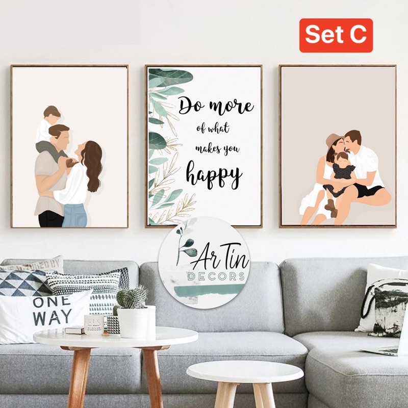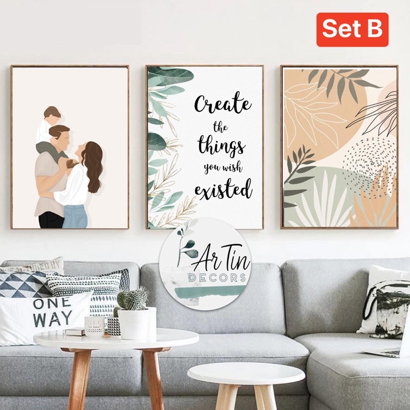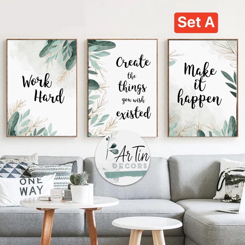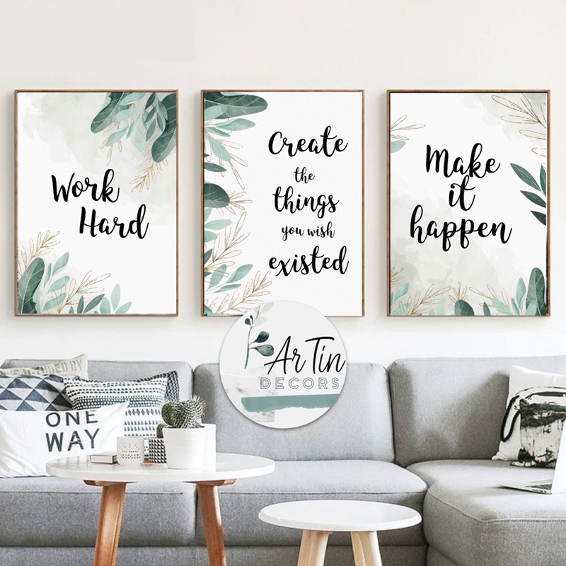 Minimalist Quotes Family Wall Frame/ Make it happen / Happy Home Decor Green Floral - Artin Decors