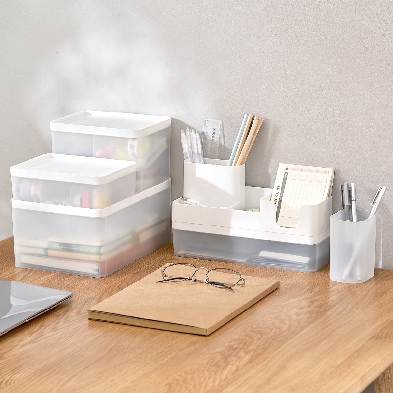 Minimalist Stackable Frosted Storage Boxes and Bins