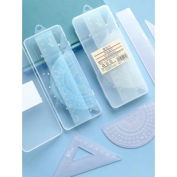 Minimalist Triangle, Ruler, Protractor Set with case (4PCS)