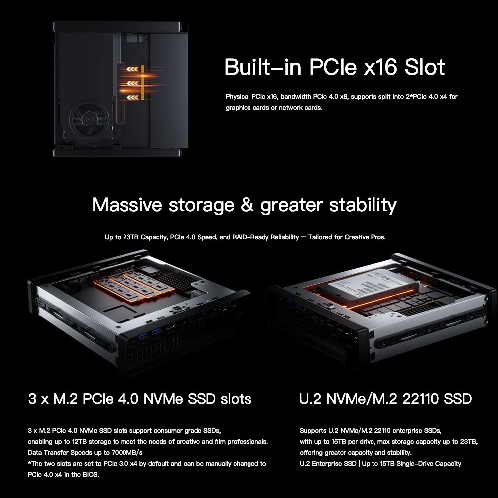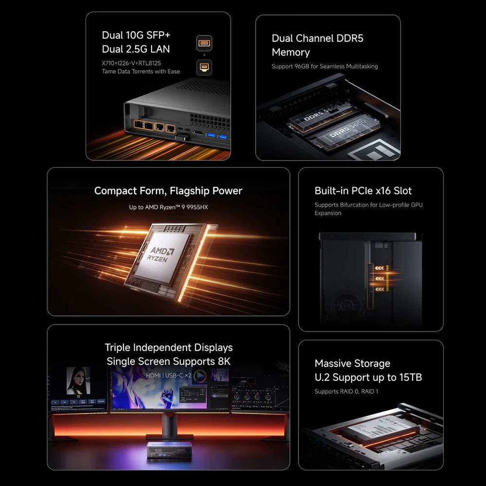 Minisforum MS-A2 Mini PC R9 7940HX/9955HX Dual 10G SFP+ Dual 2.5G Lan U.2 NVME SSD DDR5 RAM WiFi 6E Bluetooth5.3 Triple Display Mini Workstation