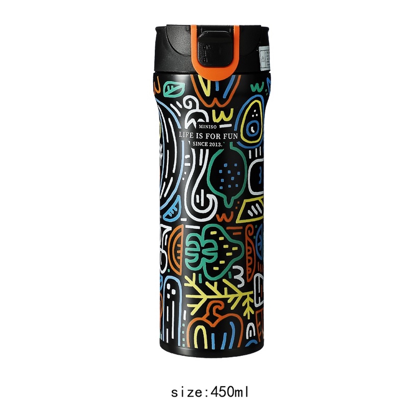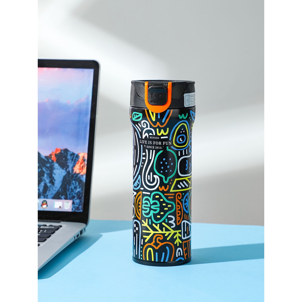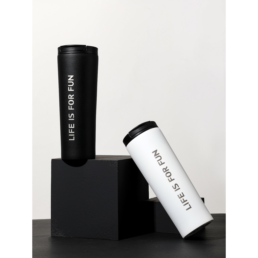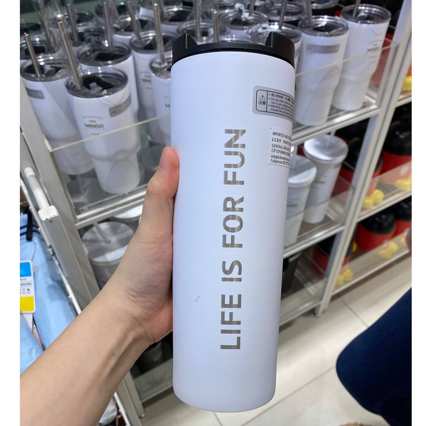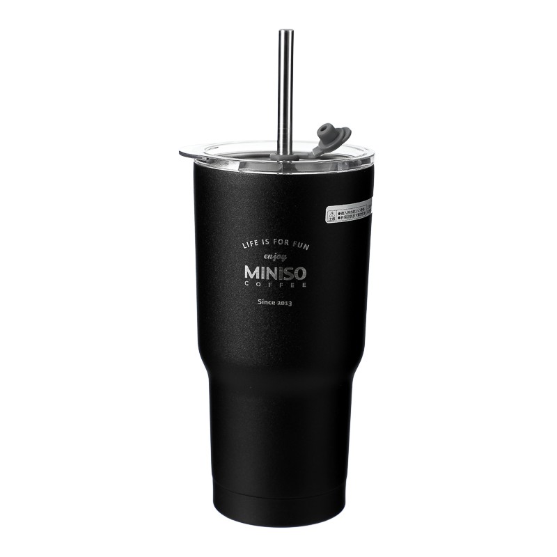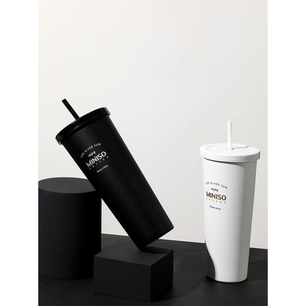 Miniso Classic Black White Series Coffee Mug Vacuum Cup Kettle Thermos Tumbler Straw Steel Bottle