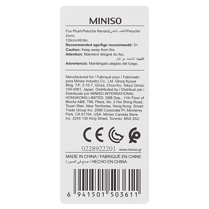 Miniso Fox Plush Toy Stuffed Toy Childrens Toy 128cm Lifesized Plush