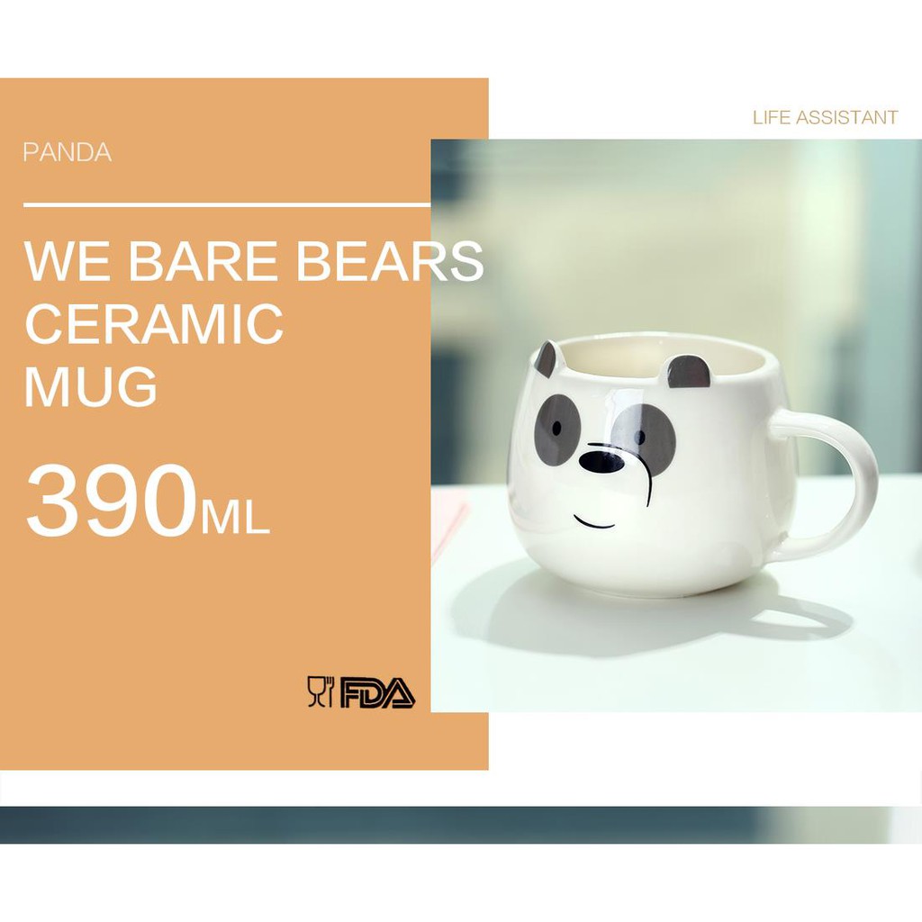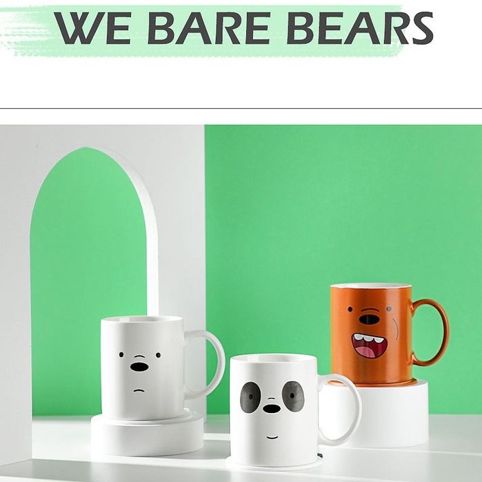 Miniso We Bare Bears Cute Glossy Ceramic Mug Panda, Grizzly and Ice Bear