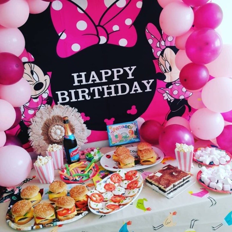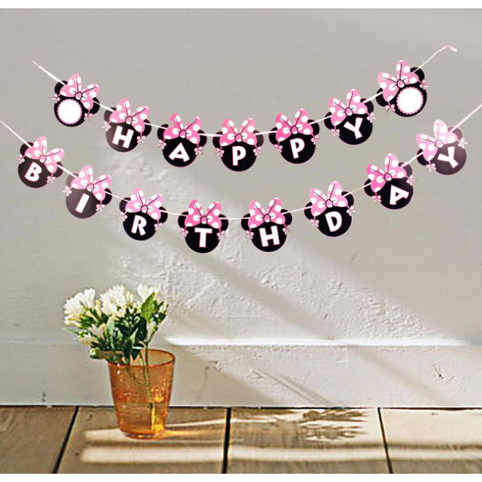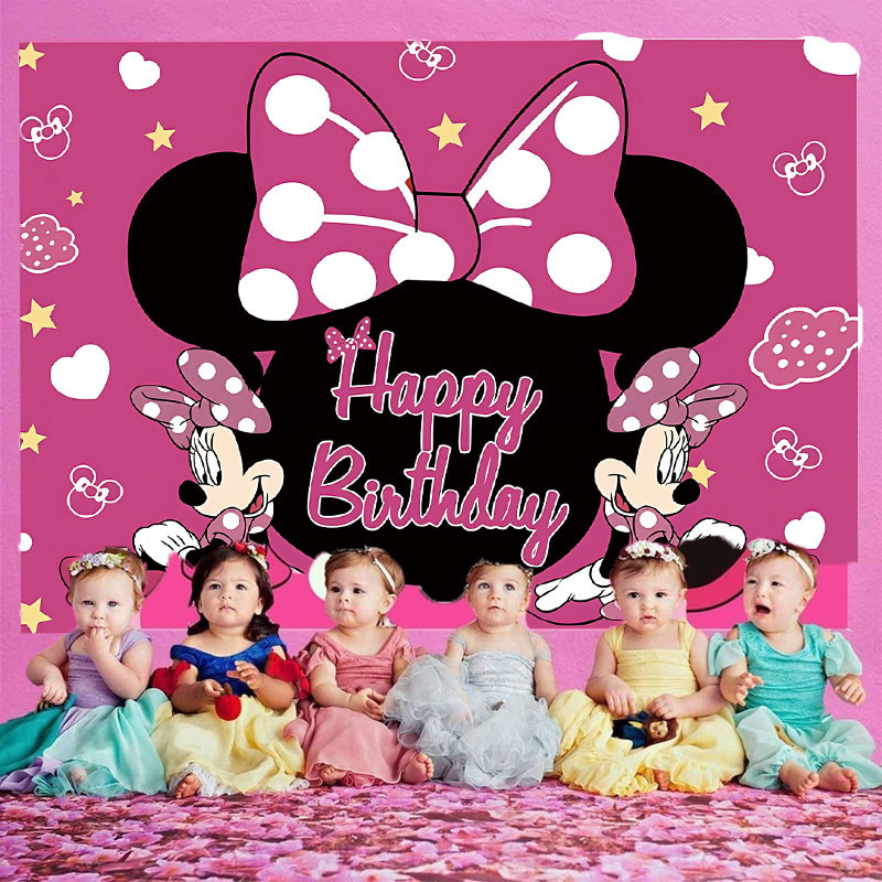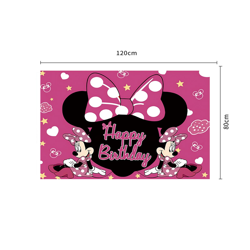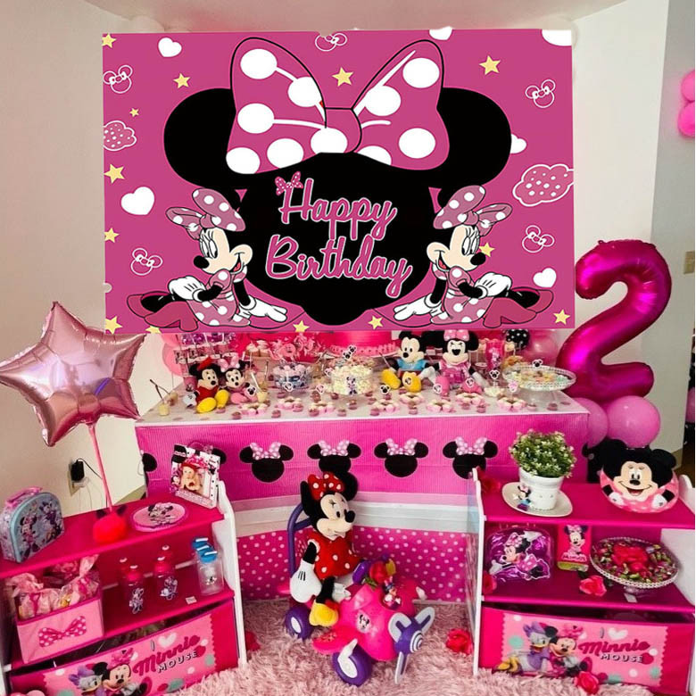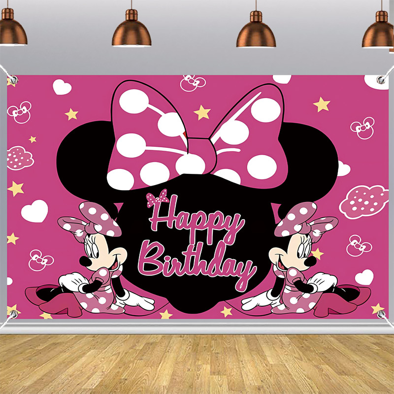 Minnie Mouse Happy Birthday Background Cloth Girls Birthday Backdrops Decor Pink Theme Party Banner Helium Balloon