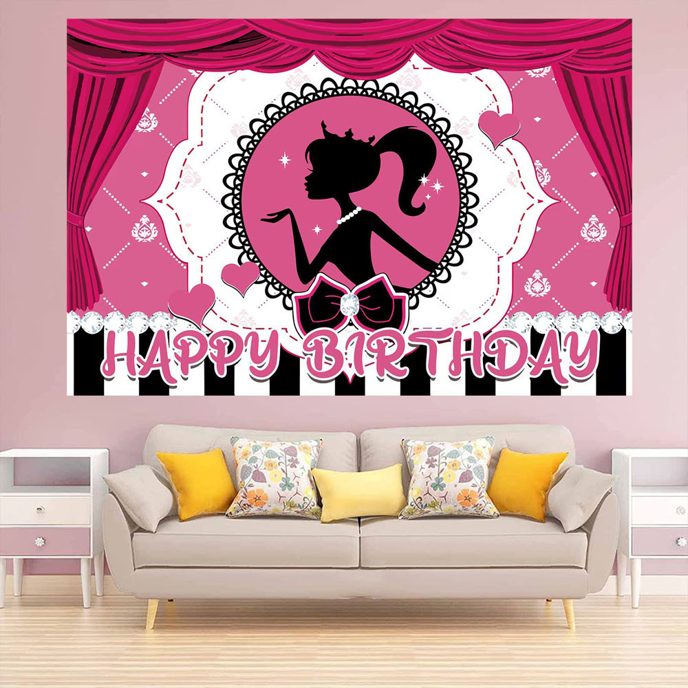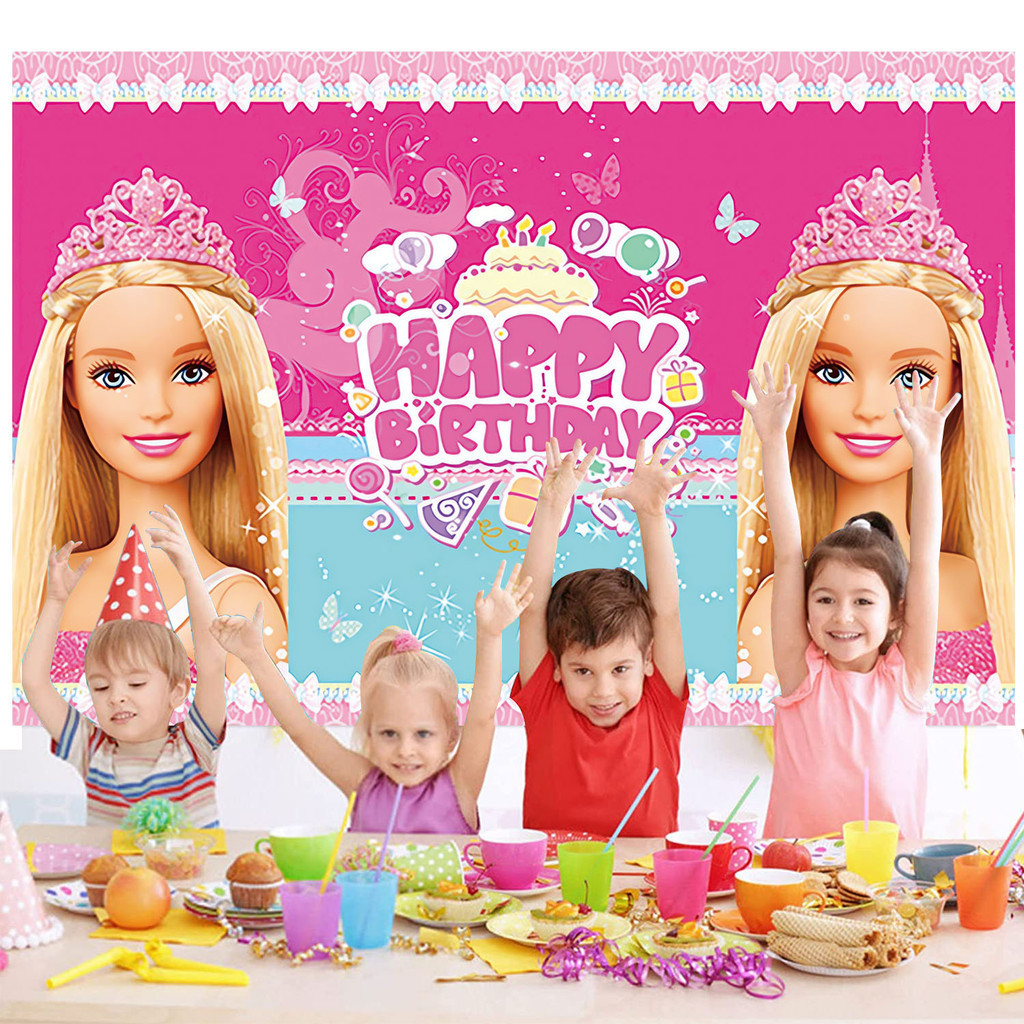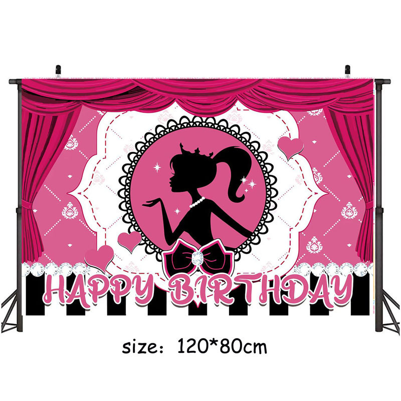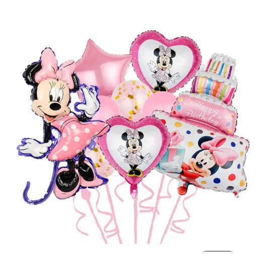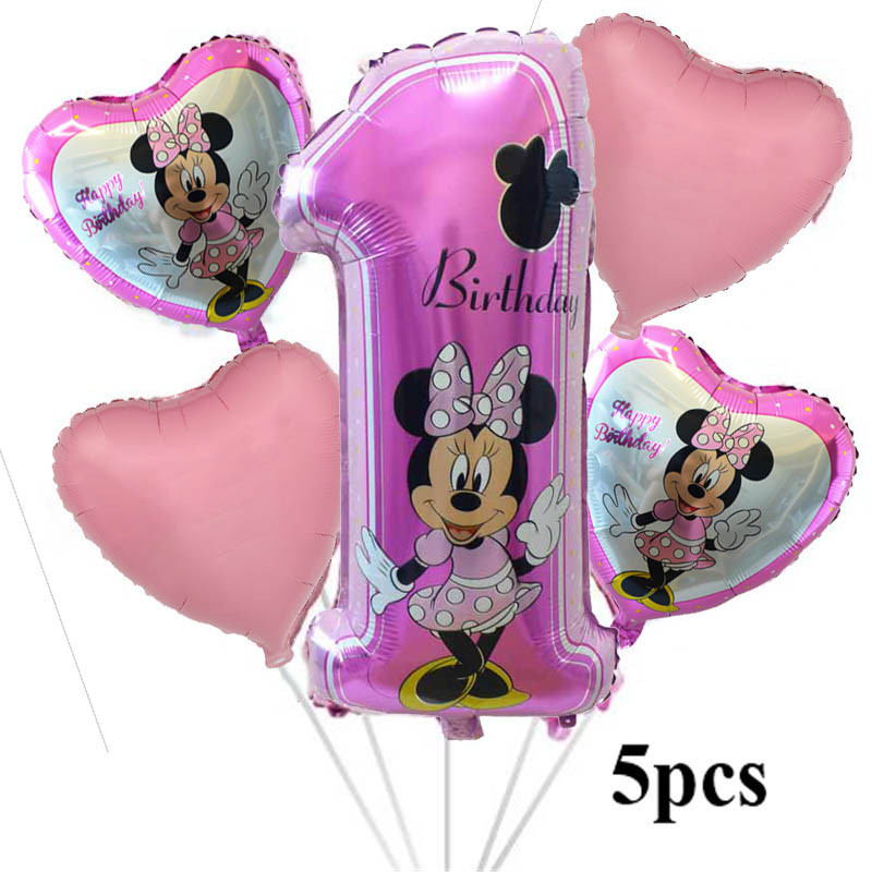 Minnie Mouse Happy Birthday Background Cloth Girls Birthday Backdrops Decor Pink Theme Party Banner Helium Balloon