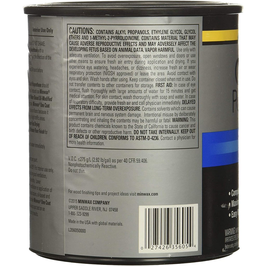Minwax One Coat Polyurethane, 1 Quart (946 ml)