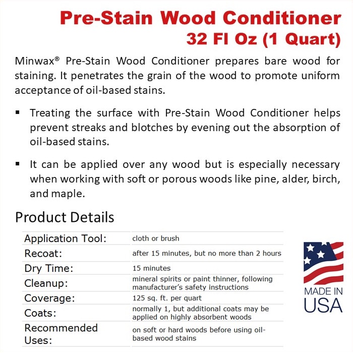 Minwax Pre-Stain Wood Conditioner, 1 Quart